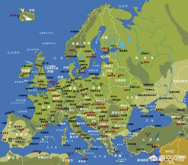 回答问题之前,我们先来看下欧洲的地图,从地图中我们可以看到欧洲主要的海有伦支海、挪威海、北海,比斯开湾,白海、波罗的海、地中海和黑海等